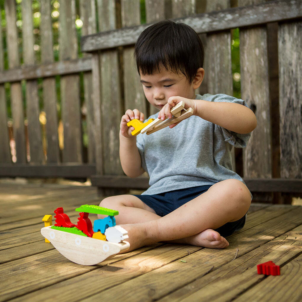 - Balance all of the animals on the wooden boat without letting them fall!